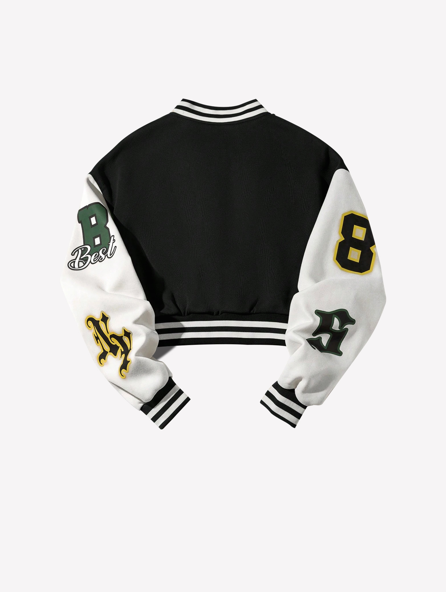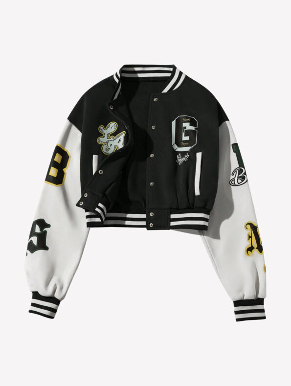 Rodefy Women’s Black & White Letter Print Varsity Jacket